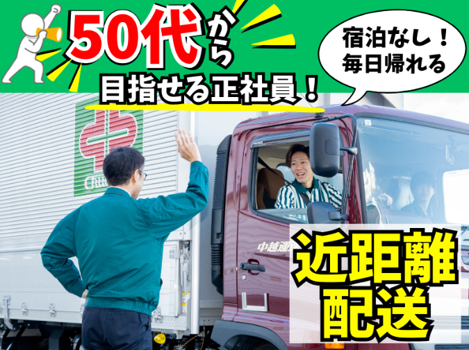 | 職種 | 近距離配送ドライバー/中高年活躍中/08:30~17:45 |
